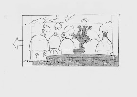 Due to overwhelming response (3 people, lol) here's another panel. This shot is a continuation of the last two panels, which is one long shot, ending here when the camera rises faster than the rocket and we see the clouds below the coastline below.